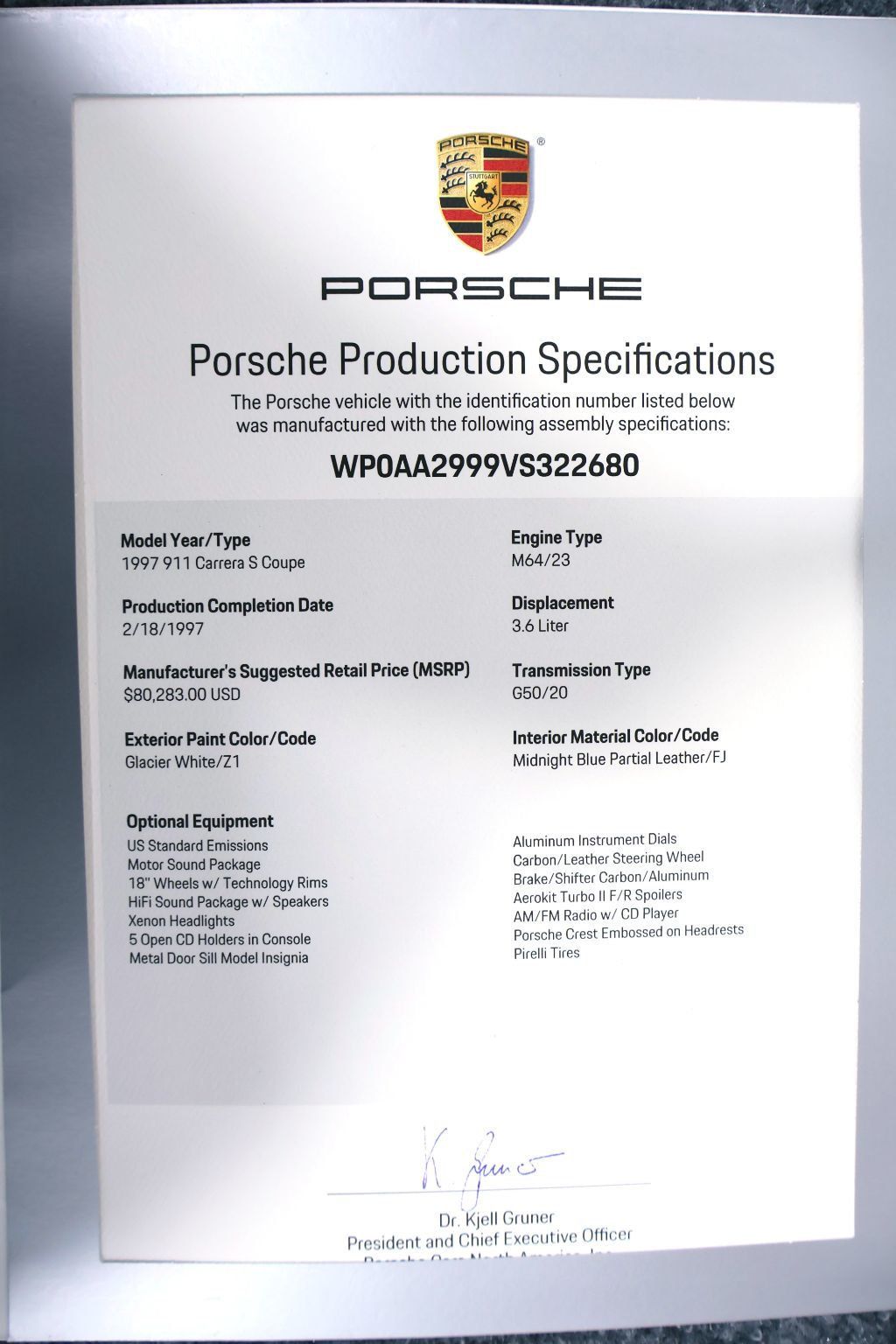 1997 993 2S WIDEBODYGLACIER WHITE on MIDNIGHT BLUE LTHR
